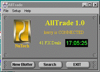 Users login to Genesis DealVu from their own workstations. Blotter setup (number, position, filter etc.) are loaded on a per-user basis. Once a user has logged in, blotters may be created using the blotter button in the main control panel window.