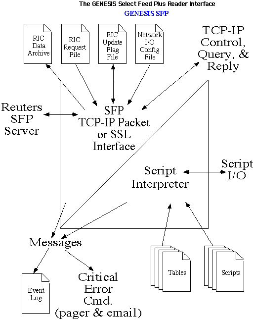 Genesis Select Feed Plus (gensfp) is a general purpose programmable client for a Reuters Select Feed Plus TCP-IP feed or an SSL-compliant Select Feed Plus data source (such as Reuters Triarch).